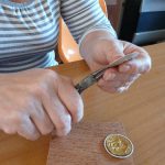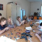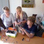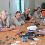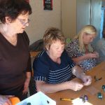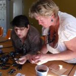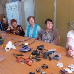 Nous avons ensuite eu droit à une démonstration par des explications très détaillées,de la patience, de l’imagination et de la créativité de notre animatrice. Elle nous a montré ses réalisations de broches faites à partir de capsules écrasées puis pliées et ouvertes en pétale pour former une fleur. Des boucles d’oreilles faites à partir du tour de la capsule tordu, frisé et ensuite replié pour faire des boules, des capsules écrasées et pliées en deux le tout accroché à un support de boucle d’oreille pour faire des demi cercles. Nous pouvions choisir les couleurs, le noir, le gris, le doré le bordeaux, le vert ….. il ne restait plus qu’à imaginer