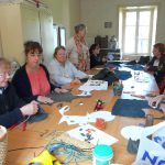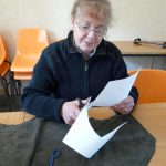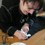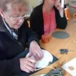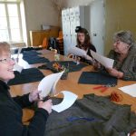 2. Avec un stylo blanc, tracer un grand cercle et marquer 20 points équidistants : les futurs 20 ‘tits trous par lequel passera le cordon …de la bourse (à biseauter pour l’enfiler plus facilement.)