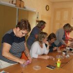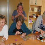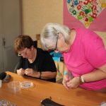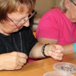 Pour notre 1 er atelier de cette année 2017/2018, Astrid avait préparé tout le matériel nécessaire à la réalisation de colliers originaux : perles, boutons, accroche-cœurs, fils, ciseaux… Il suffisait de se lancer (il n’y avait pas d’instructions précises) et de laisser libre cours à son inspiration (ce qui n’est pas forcément facile…). Mais en fait, ce que tout le monde voulait, c’était se retrouver, discuter, rire, échanger. Qu’importe le résultat! Et là, ce fut une après-midi très réussie.