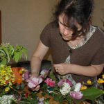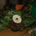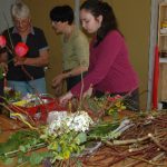 Après nous avoir montré des exemples de ses réalisations, Christiane a apporté son savoir faire pour que chacune reparte avec une belle composition. Elle insiste sur l’intérêt d’utiliser au maximum tout ce qui est à notre portée dans la nature : « On peut faire beau sans payer cher »