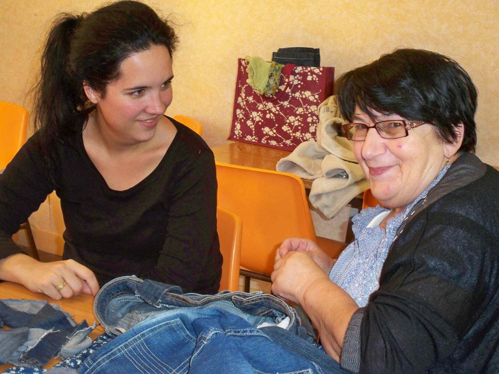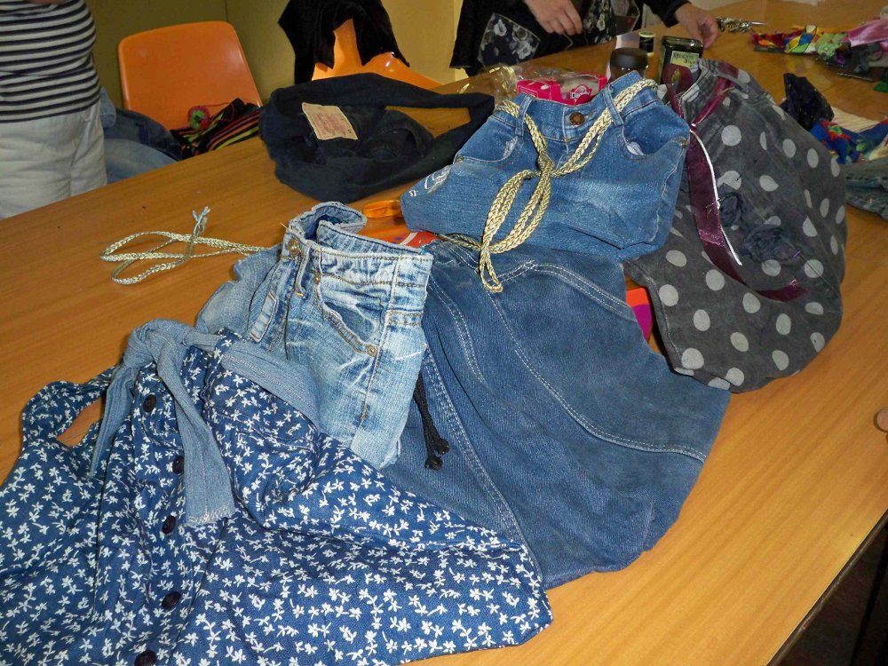 Nous sommes toutes arrivées avec des vieux jeans (pantalons, jupes…) usés ou trop petits, rarement trop grands.