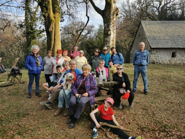 Une vingtaine de personnes a pris le chemin regroupée dans quelques voitures. Après une fin de trajet cahoteux de 1km environ, nous sommes arrivés au pied de notre surprise : des chemins forestiers assez larges et agréables. De nombreuses « bonnes fontaines » ont agrémenté la visite. Celle des amoureux, puis celle des yeux, des dents, des rhumatismes, des mendiants et des animaux nous ont permis quelques haltes bien appréciées. Une escapade supplémentaire nous a été proposée pour apercevoir la Chapelle de Mont Gargan au dessus du mont voisin. Notre retour s’est effectué par un autre chemin à 700 m d’altitude avec vue sur un magnifique panorama des reliefs corréziens et la Combe d’Enval où il y avait soi-disant un château et une chapelle qui ont été incendiés en 1924.