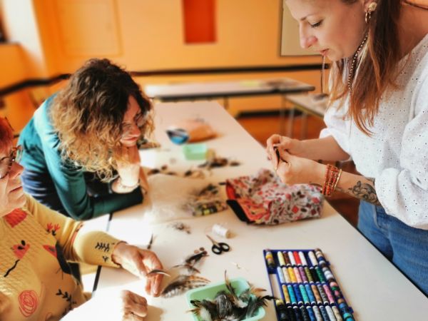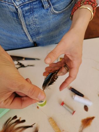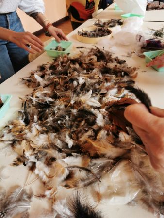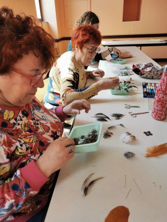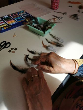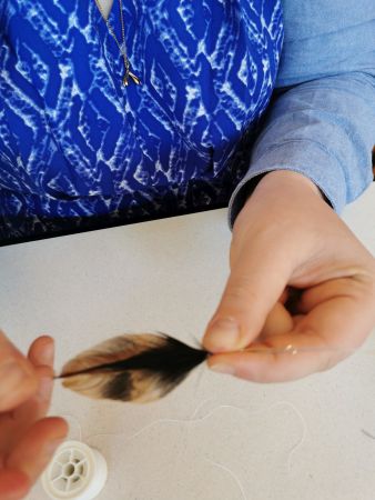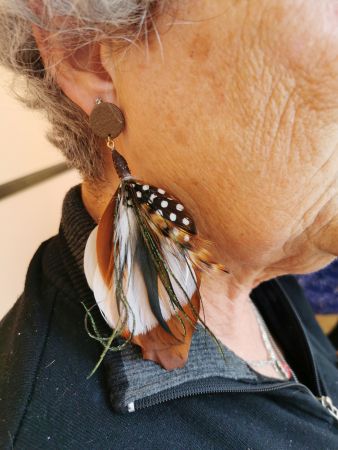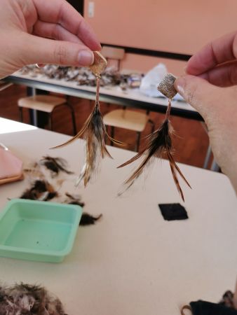 Aujourd’hui, nous avions un atelier inédit, boucles d’oreilles en plumes .