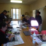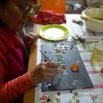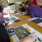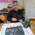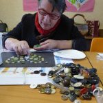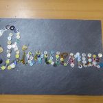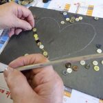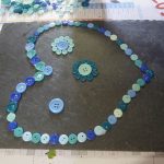 Encore une après-midi bien agréable et originale. Pas trop compliqué, il suffit de coller des boutons sur une ardoise. Finalement, le plus dur pour démarrer, c’est de choisir son thème! Il y a les fans des cœurs et celles des écritures. Annette préférera la clé de sol et Mariam le croissant en souvenir de son pays.