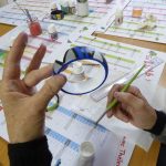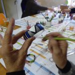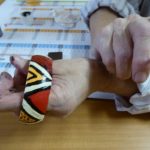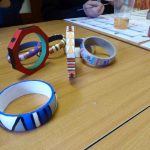 Un 1er atelier qui a l’air simple : décorer des bracelets en bois brut avec de la peinture. Mais pour avoir un résultat correct, il faut être méticuleux et patient : attendre que ça sèche entre 2 couches, réfléchir aux motifs, ne pas déborder, choisir ses couleurs.