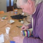 On a eu une après-midi un peu stressée, car tresser n’est pas facile sans utiliser une aiguille! Avec l’aide de nos ongles et l’inventivité de certaines de nous, c’est réussi! Et les résultats, très sympa!