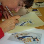 Atelier enluminure : nous nous imaginions déjà, tels les moines copistes du moyen-âge, faire de belles majuscules pour illustrer la 1ère page d’un manuscrit… Mais Nadine nous avait prévu un tout autre programme. Car pour apprécier la diversité de la technique de l’enluminure, elle nous avait choisi des images avec pose de feuille d’or, mise […]