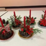 Aujourd’hui Astrid nous a proposé de faire un centre de table pour Noël. Après avoir décoré une assiette qui allait servir de support à notre réalisation avec des peintures pour porcelaine nous nous sommes attaquées à notre centre de table. Autour d’un cercle métallique nous avons collé des petites pommes de pin. Un cercle de […]