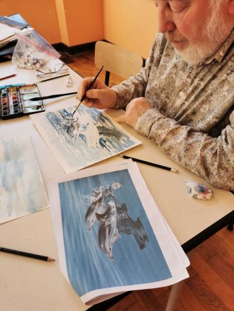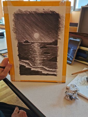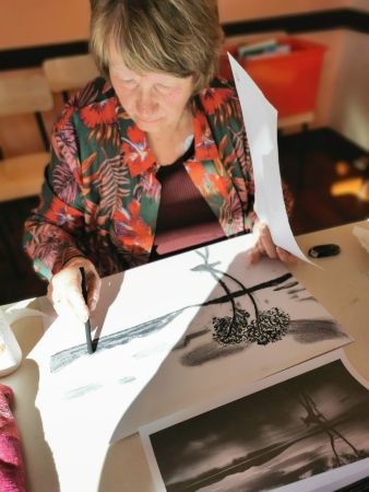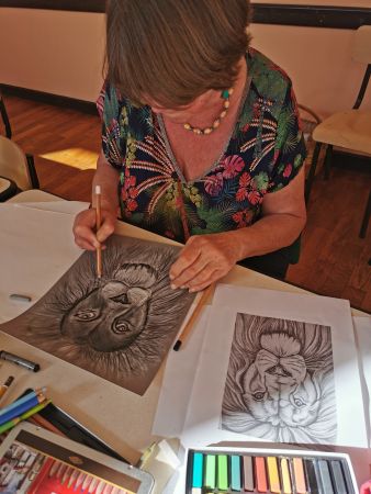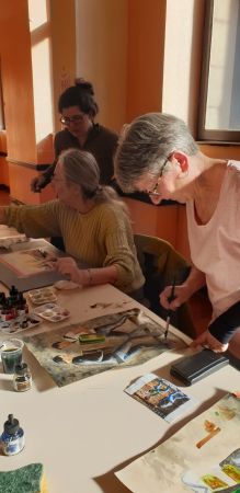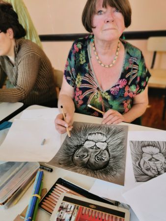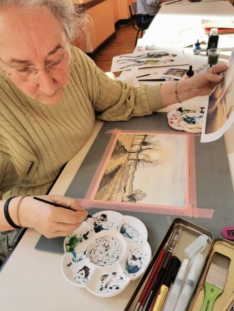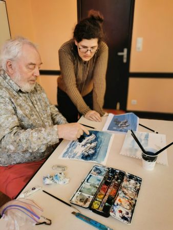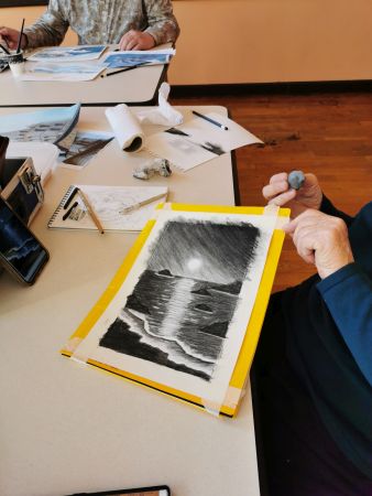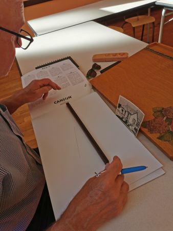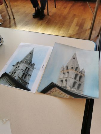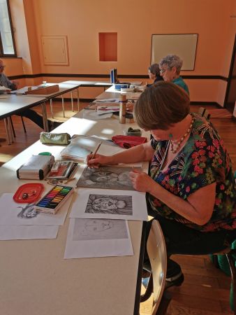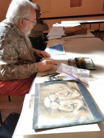 Un nouveau cours avec Liliane. Certains commencent à penser à l’exposition du 12 mai sur le thème « du noir au blanc ». Encre, fusain… Les autres terminent leur projet en cours. Serge s’essaie à la perspective, John à l’aquarelle technique mouillé sur mouillé.