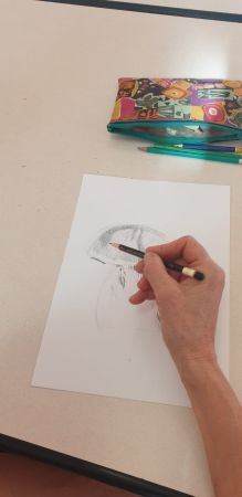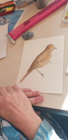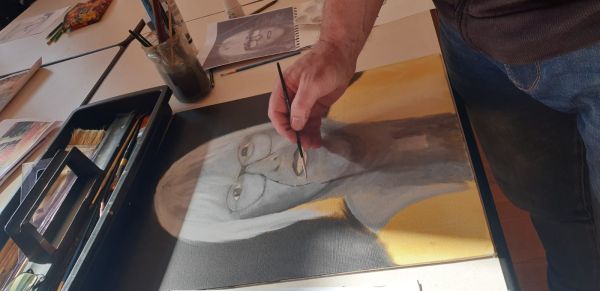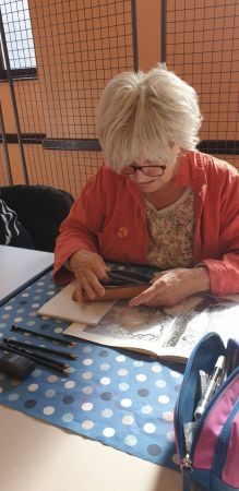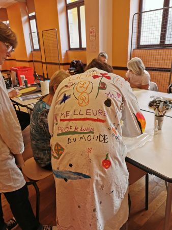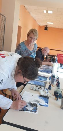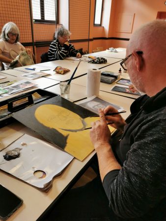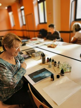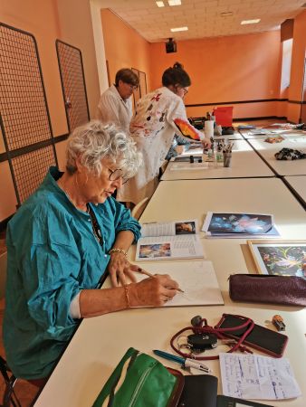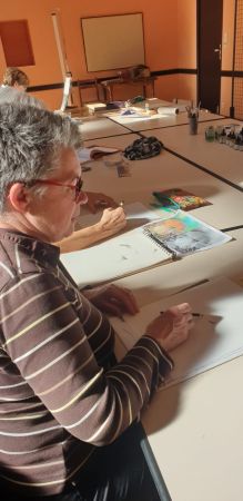 De l’aquarelle, de l’encre, de l’ huile du crayon…dans une bonne ambiance très positive où on oublie le reste comme une bouffée d’air frais.