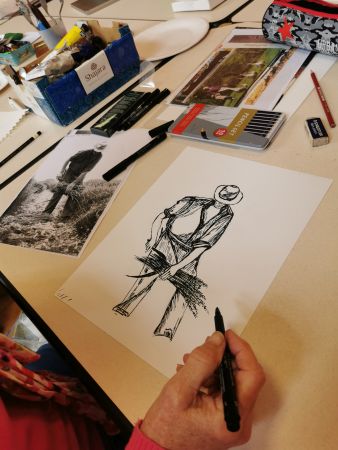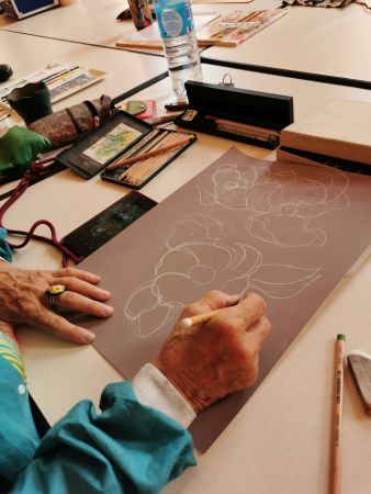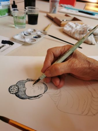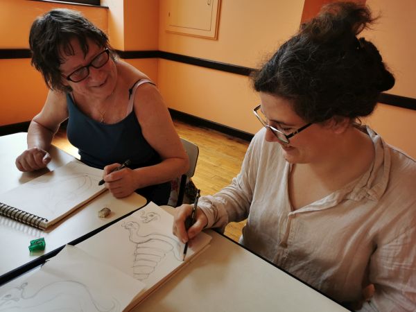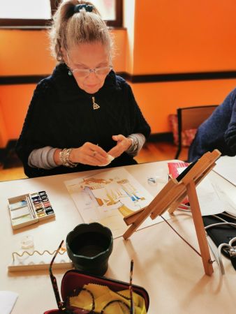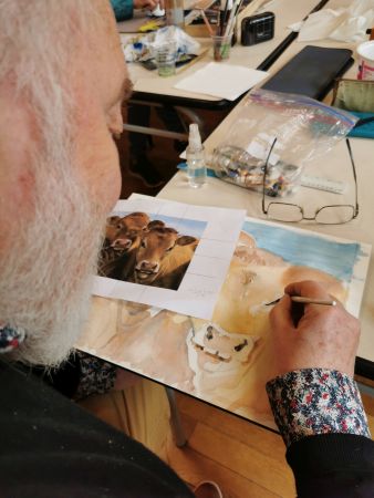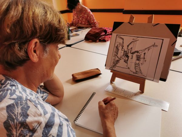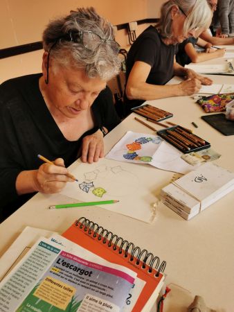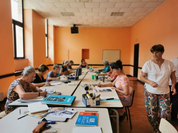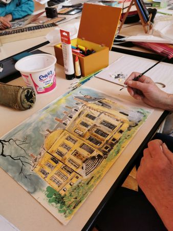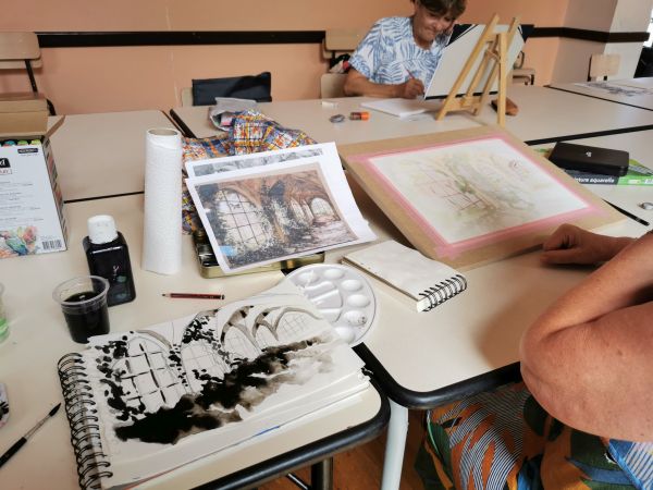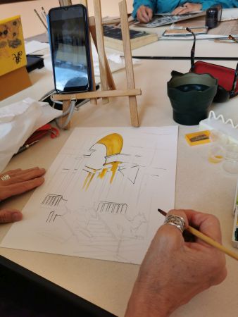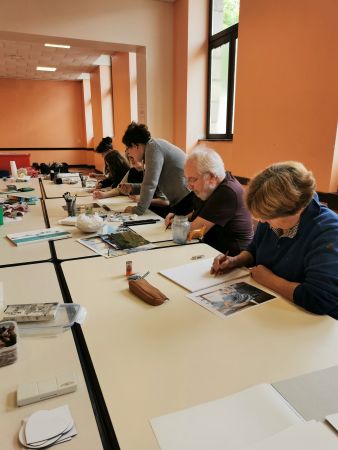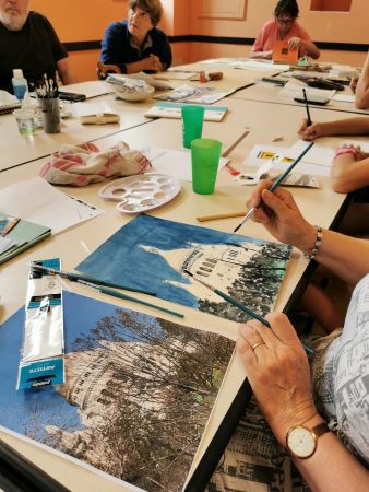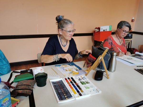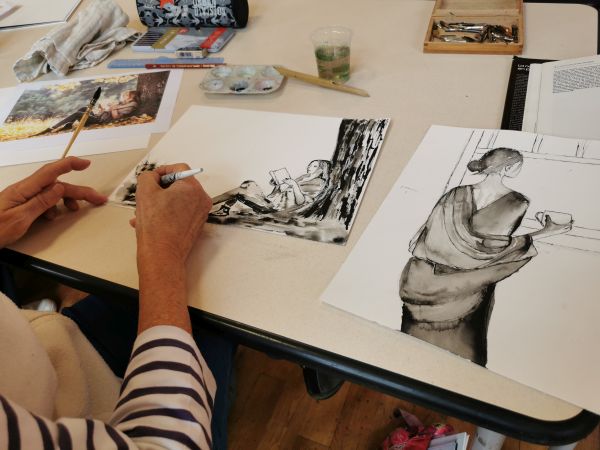 Nous continuons nos cours avec Liliane tous les 15 jours. Nous progressons chacun dans notre technique. Aquarelle, encre de Chine, feutres, crayons de couleurs, huile… On essaye, on s’amuse. Les résultats sont toujours surprenants dans leur diversité. Liliane distille ses conseils avec bienveillance.