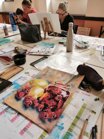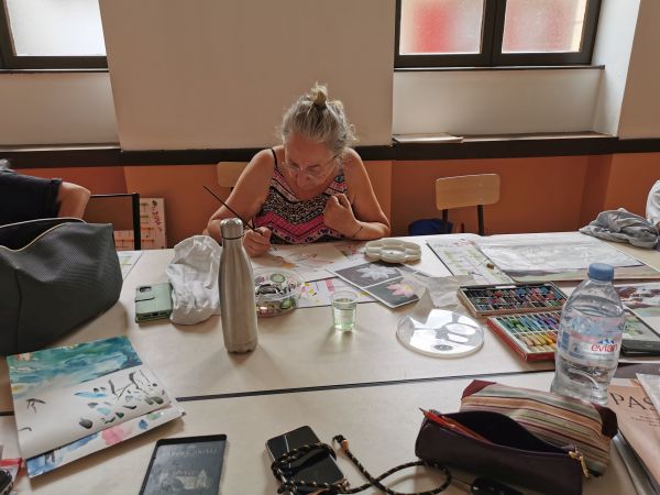 Quant aux adultes, chacun sa technique : aquarelle, peinture au couteau, pastel…