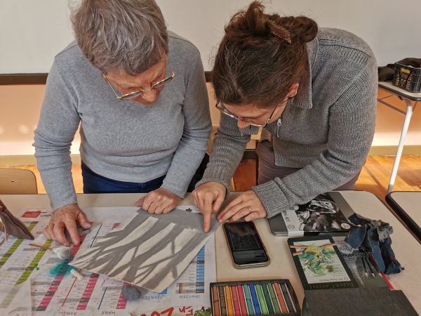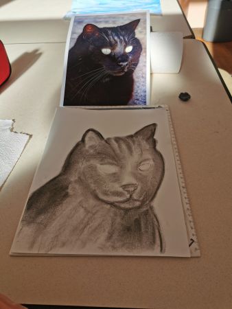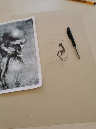 Quant à nous, nous avons aussi appris à reproduire un dessin sur une feuille pastel, ou encore découvert les proportions des « visages » des chats, des animaux et des humains.