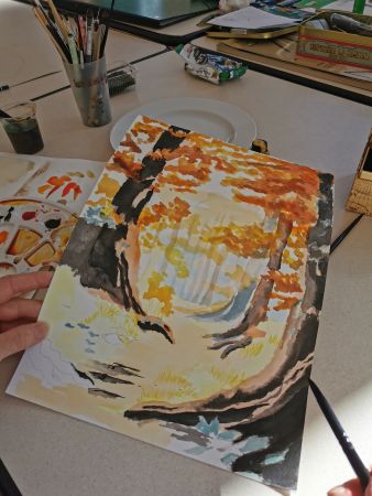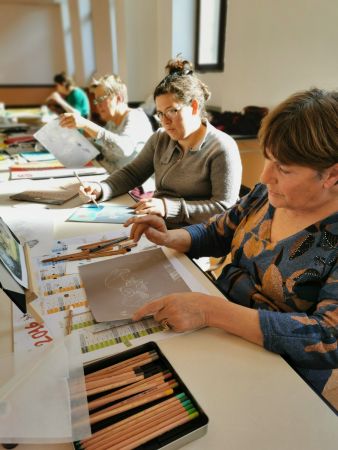 Elle nous guide, distille ses conseils et parfois si nous sommes assez autonomes, elle débute un dessin à l’encre. Autant vous dire qu’il y a du niveau !!! Mais la regarder, c’est aussi une façon d’apprendre.