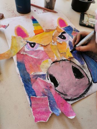 Il y a également du stylo noir et blanc et aussi une technique de papiers déchirés qui fera naître une belle licorne.