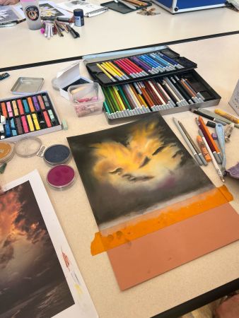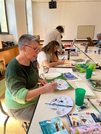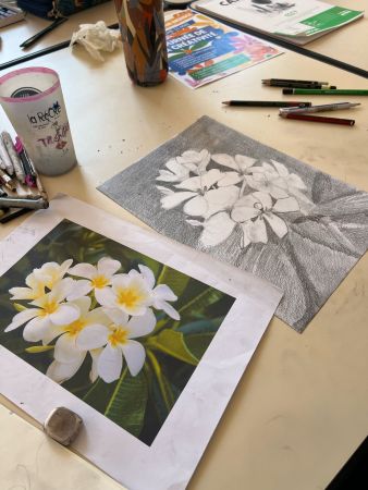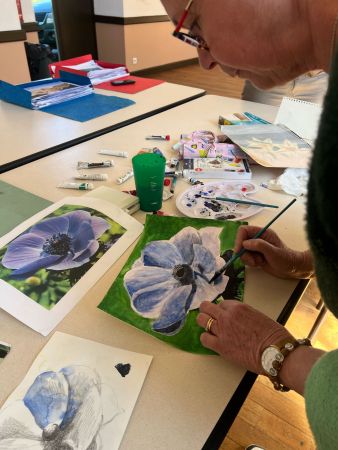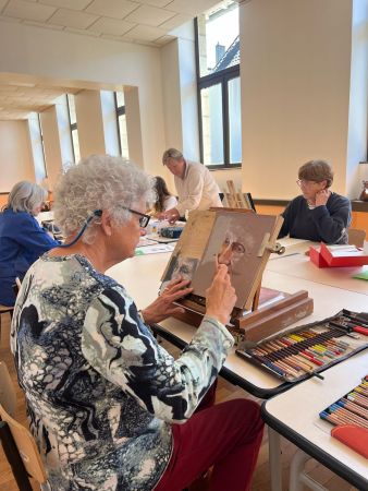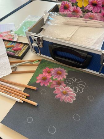 Chacun de nous a commencé, continué ou fignolé son dessin. Certaines se sont essayées à l’aquarelle, d’autres au crayon graphite ou encore aux pastels.