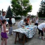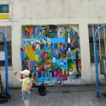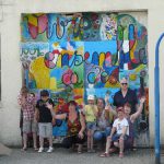 Petits et grands ont peint des morceaux de carton prédécoupés en laissant parler les couleurs et leur imagination. La seule consigne était de ne pas peindre sur les lignes noires… Et pourquoi donc à votre avis? Une fois tous les morceaux décorés, il n’y a plus qu’à assembler et découvrir le message … « Vivre ensemble, ça c’est l’harmonie »