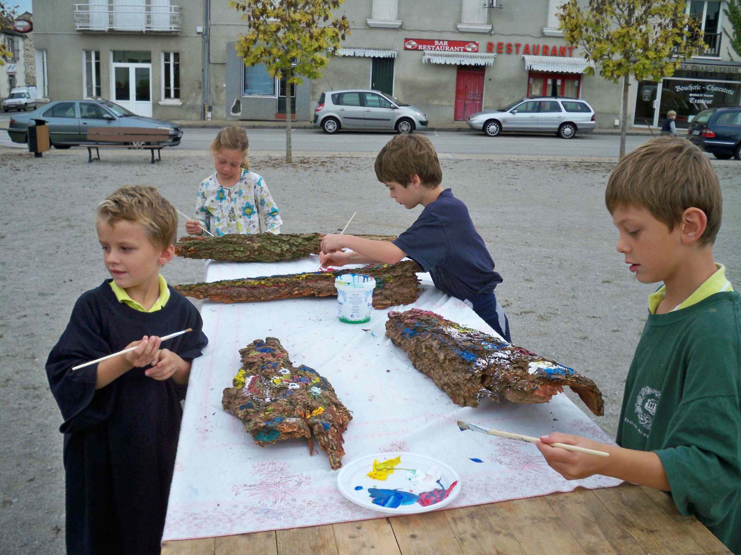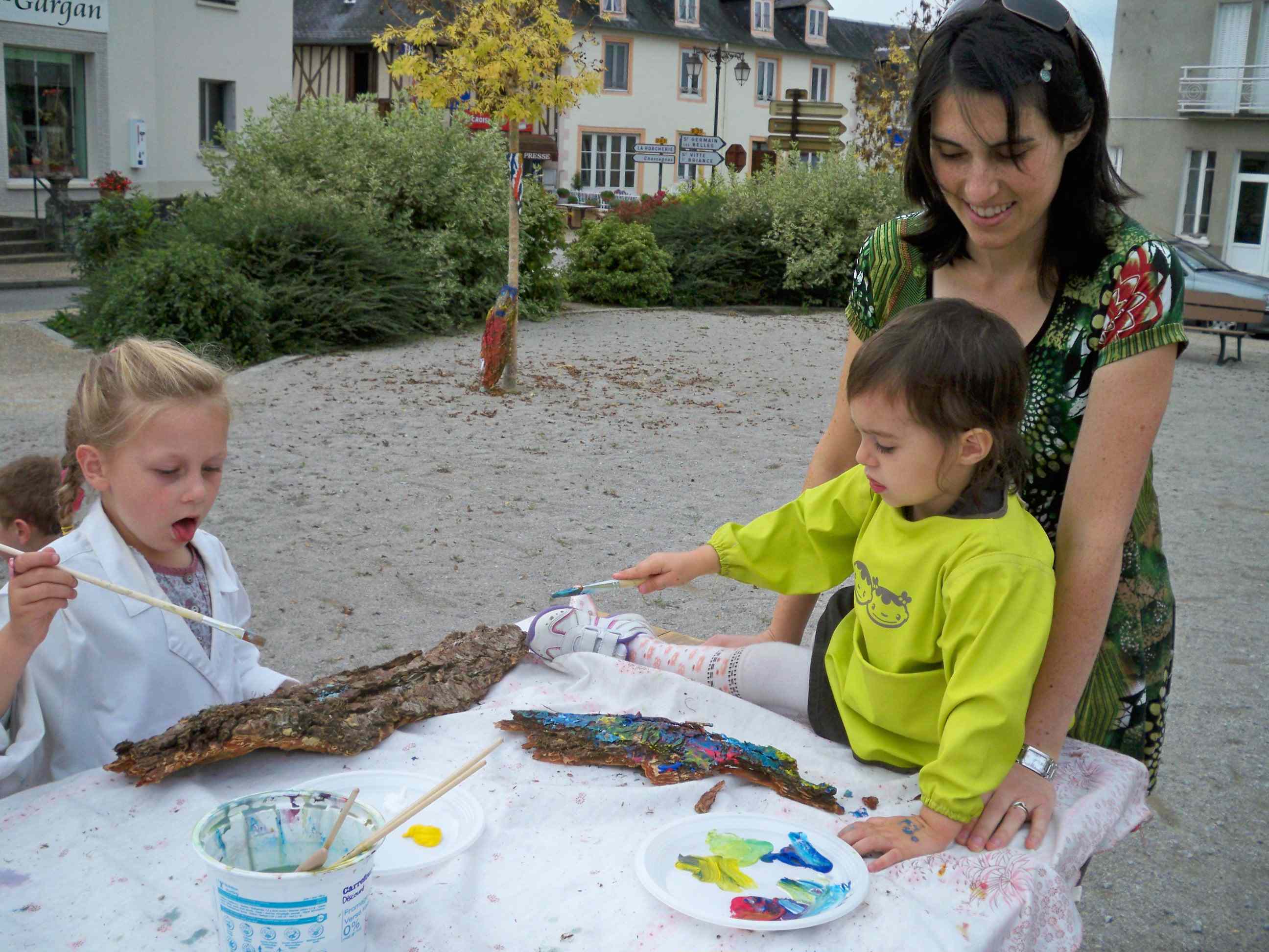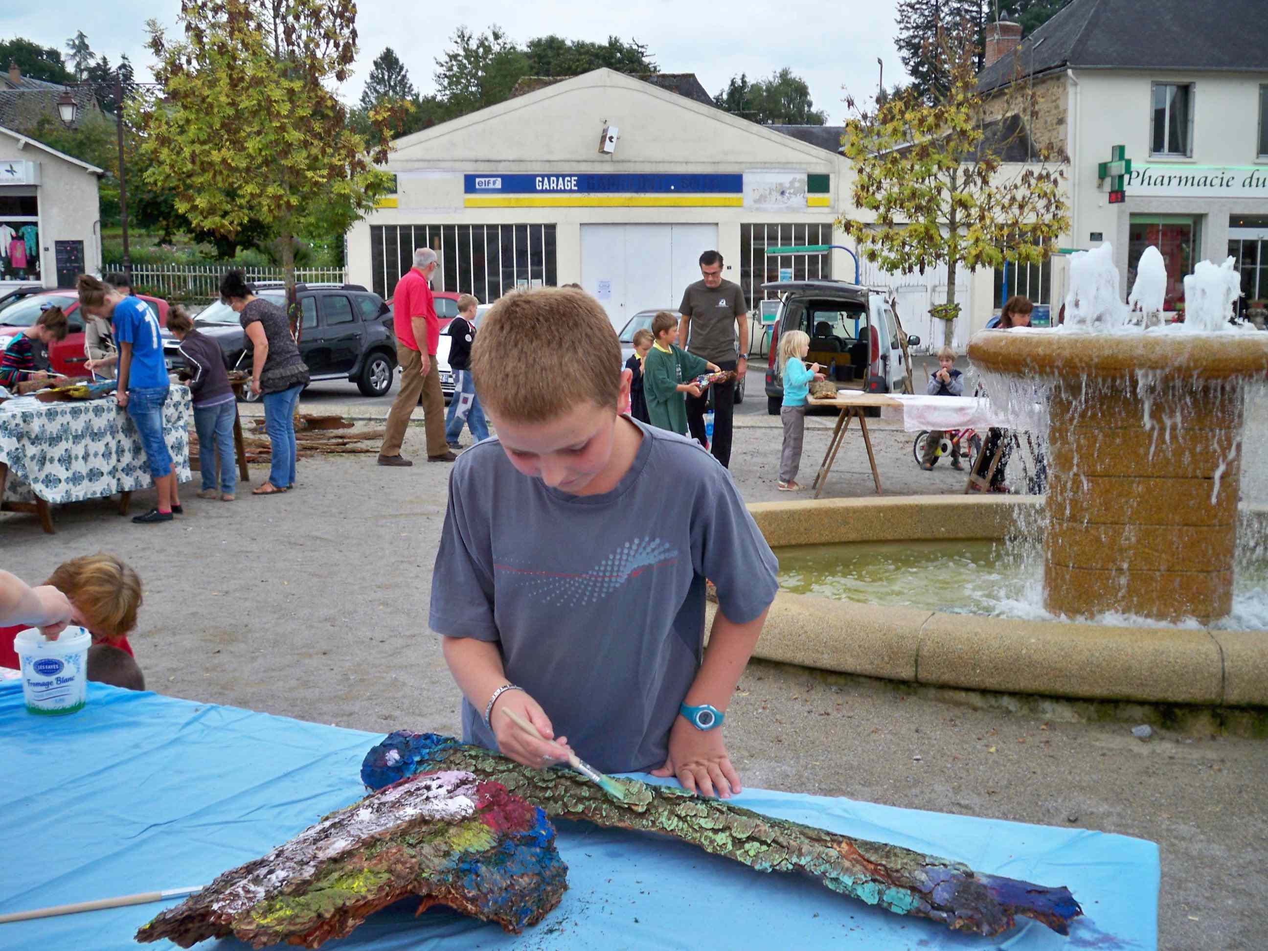 Le ciel a été clément pour ce 5ème E.C.C événement créatif collectif proposé par l’association Récré-ART-tion. Vous étiez une trentaine à nous rejoindre sur la place de La Croisille. A votre disposition, de la peinture, des pinceaux, des blouses et des écorces. Votre défi « donnez vie au peuple des écorces ». Comme toujours les enfants ont montré l’exemple et sous l’œil intrigué des visiteurs sont nées des créatures bizarres. Un beau voyage au pays de l’imaginaire.