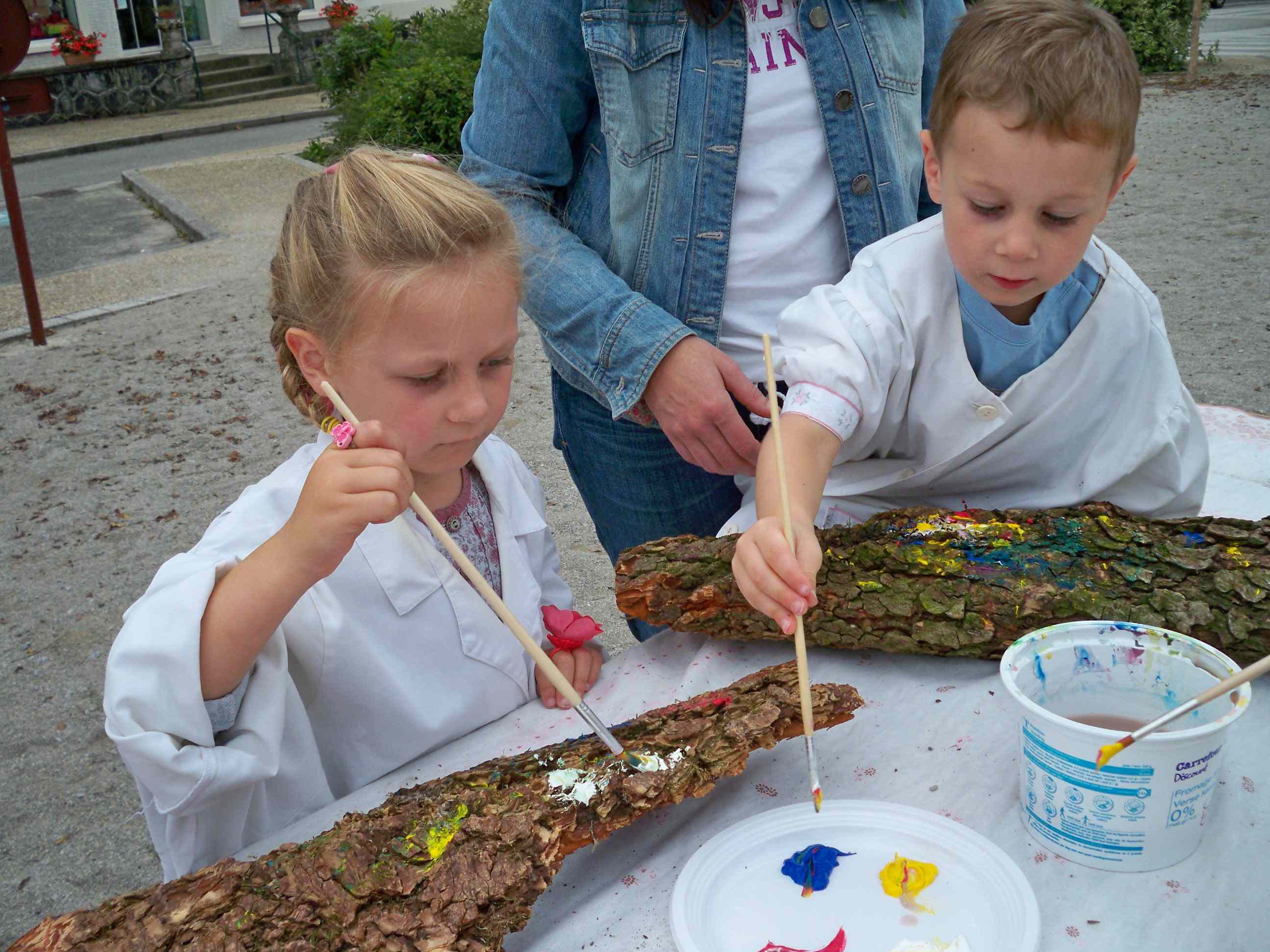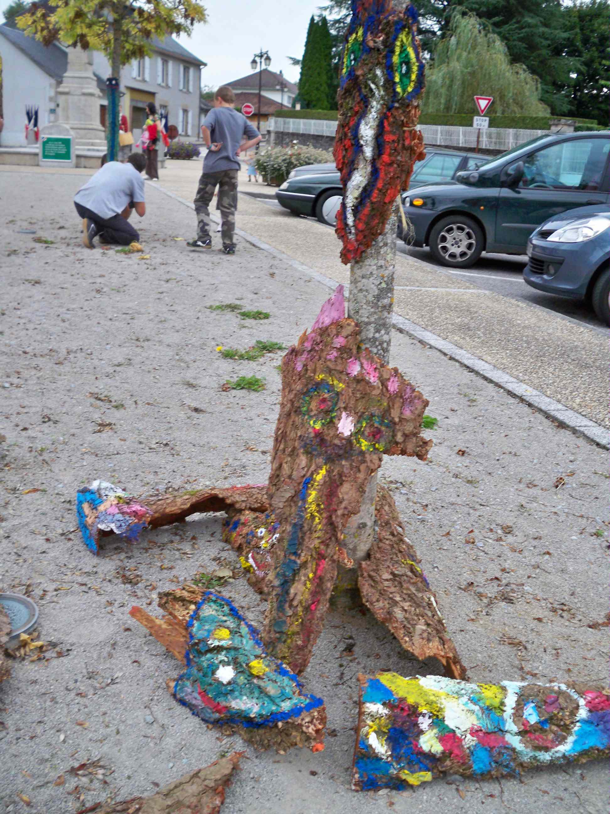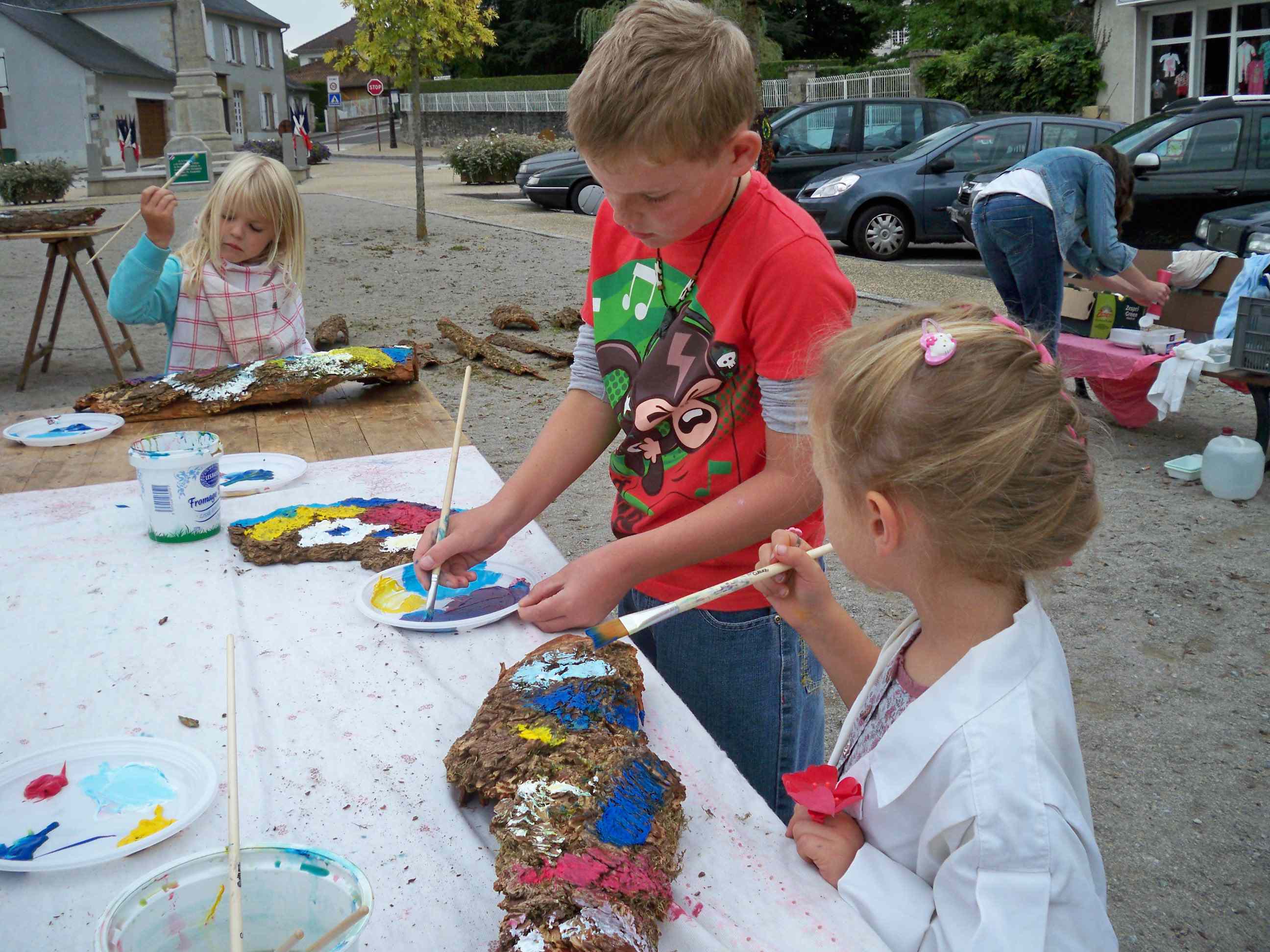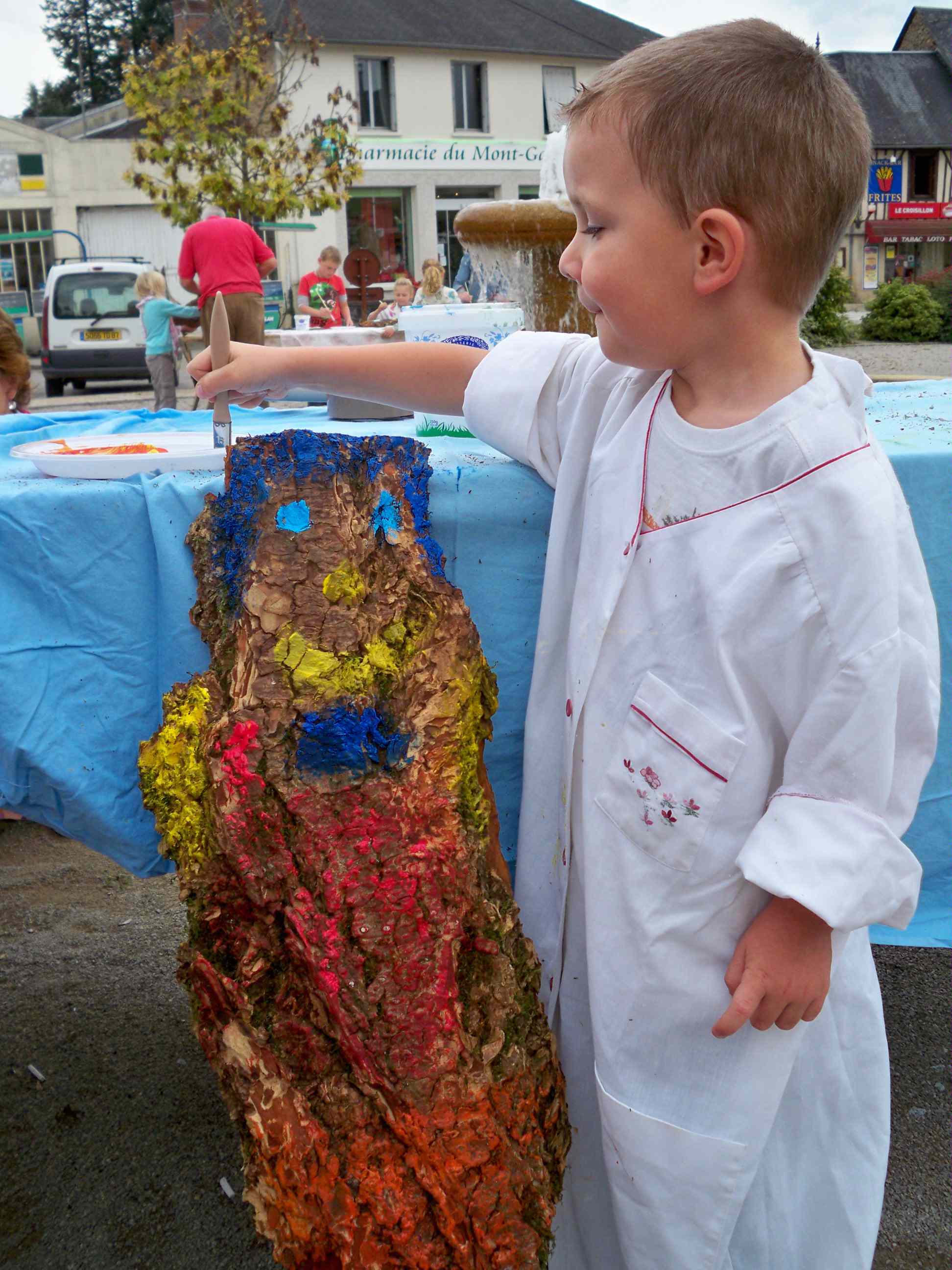Le ciel a été clément pour ce 5ème E.C.C événement créatif collectif proposé par l’association Récré-ART-tion. Vous étiez une trentaine à nous rejoindre sur la place de La Croisille. A votre disposition, de la peinture, des pinceaux, des blouses et des écorces. Votre défi « donnez vie au peuple des écorces ». Comme toujours les enfants ont montré l’exemple et sous l’œil intrigué des visiteurs sont nées des créatures bizarres. Un beau voyage au pays de l’imaginaire.