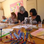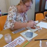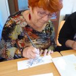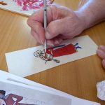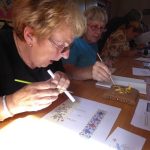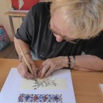 Nadine a eu la gentillesse de nous initier à sa passion, l’enluminure. Il faut procéder par étapes :