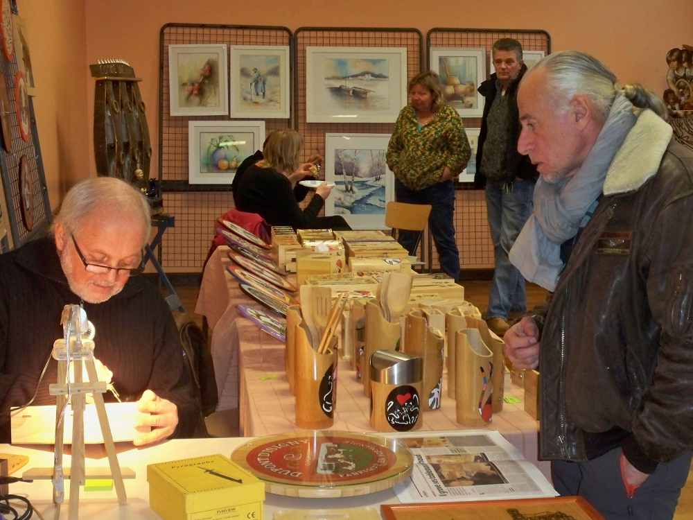 Les rencontres et les échanges s’opèrent. Les « artistes créateurs », fiers, expliquent leurs techniques et parfois sur une envie ou un coup de foudre des objets changent de mains ( ils seront peut être offerts à Noël ? ).