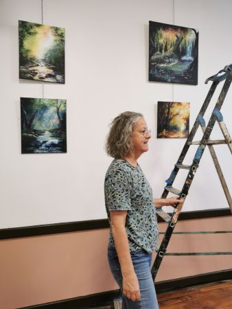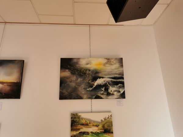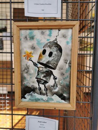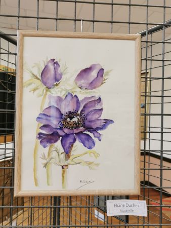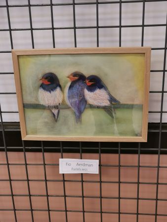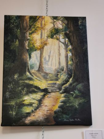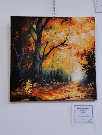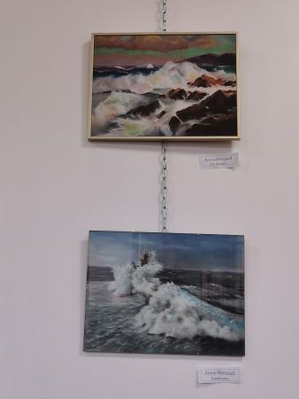 L’exposition était scindée en deux parties : d’un côté, les œuvres de Liliane (très inspirée par la nature, les arbres, l’eau…), de l’autre les réalisations de ses élèves. Nous avons pu apprécié les progrès accomplis en une année de cours.