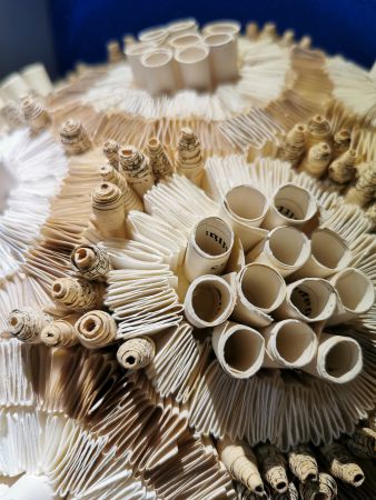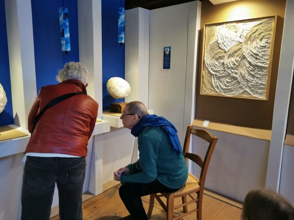 Cette après-midi, nous étions tous des enfants à écarquiller nos yeux devant les merveilles en papier de l’exposition « Océans » au moulin du Got : des poissons multicolores, des méduses, des sardines en conserve, des raies, des tortues, des coquillages…