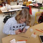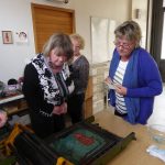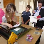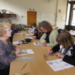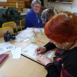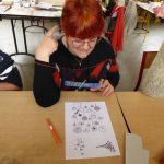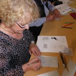 L’atelier qui a suivi a été très réussi. Nous avons gravé des motifs sur des boites de carton de lait (eh oui), puis choisi nos encres et imprimé sur des papiers de couleurs différentes. Chacun a laissé libre cours à son imagination et comme toujours les résultats sont très variés. Encore une belle après-midi récréative.