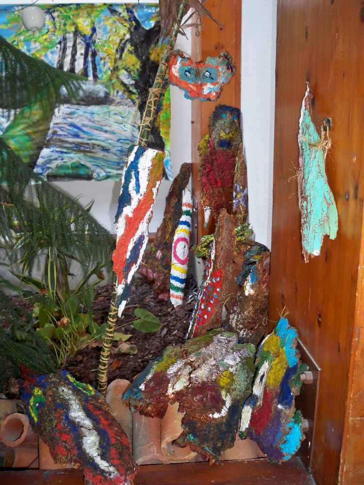 Lors de notre 5ème ECC, petits et grands avaient donné vie au peuple des écorces. Après avoir décoré notre place à La Croisille, toutes les oeuvres ont été exposées dans la salle à manger de la maison de retraite de Châteauneuf. Un joli partage avec nos aînés pour égayer leur quotidien.