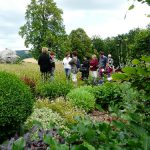 Nous avons découvert les jardins datent de 1885. Ils ont été réaménagés en 2006 par les propriétaires Prudence et Jaap. Au fil de notre promenade, nous allons de surprise en surprise : de grands arbres centenaires, des bassins, un chenil, un lavoir, un potager, un jardin blanc, un jardin paysager avec des graminées, un jardin d’aromatiques, une pergola de hêtre pourpre et vert … Prudence nous conte des histoires de jardins et de fleurs.