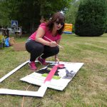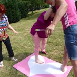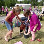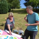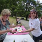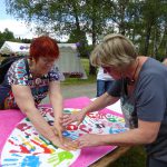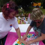 Sarah nous avait demandé de faire un atelier en plein air lors de l’après-midi de la manifestation en faveur de la lutte contre le cancer. Bien sûr, nous étions présentes. Nous avons proposé aux participants de mettre la main à la pâte ou plutôt la main dans la peinture. Petits et grands se sont prêtés au jeu pour réaliser de grands cœurs roses remplis de mains solidaires. Nous avons passé une très belle après-midi, l’ambiance était bonne enfant et chaleureuse. A refaire certainement.