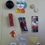 On va rajouter des petits objets à coller sur des aimants (pinces à linge, bonbons à la réglisse, bijoux, boutons…).