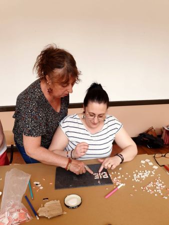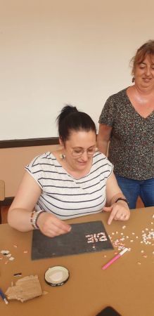 Ambiance détente, petit gâteau à la fin de l’atelier ! Toutes repartent ravies avec leurs réalisations qui orneront avec originalité leur intérieur.