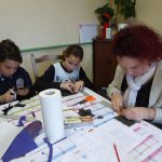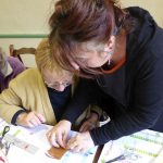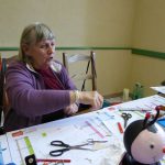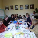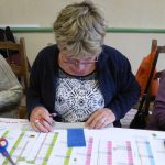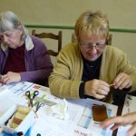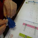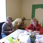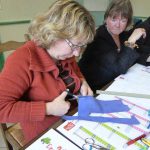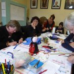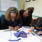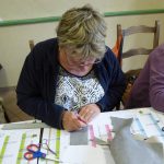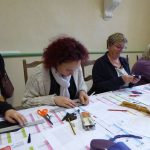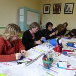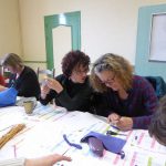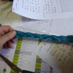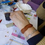 Nathalie et Annie avaient préparé un atelier pour réaliser des petits objets en cuir. Rien de très compliqué a priori. Il faut simplement être patiente et ne pas se prendre la tête pour faire la tresse. On a pu faire des pompons pour le sac de toutes les couleurs, des bracelets et un « truc » pour tenir rassemblés les fils des portables ou autres. Finalement, nous avons passé une bonne après-midi comme d’habitude, surtout que Nathalie nous avait préparé un gâteau surprise : un cake carotte-cumin! Un délice.