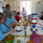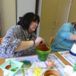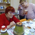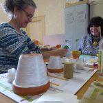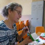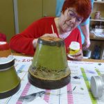 Annette ( et son mari Patrick) ont tout prévu : les pots en terre, les cales en bois (sciées par Patrick), les peintures, les décos (coquillages, filets, cailloux etc…).