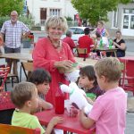 Pour profiter des belles chaises et tables rouges réalisées lors de l’ECC (événement créatif collectif ), nous avions décidé d’un pique-nique informel, un soir de beau temps. La soirée fut très réussie : partage, bonne humeur et bon repas. Et beaucoup avaient poussé le détail jusqu’à s’habiller de rouge…