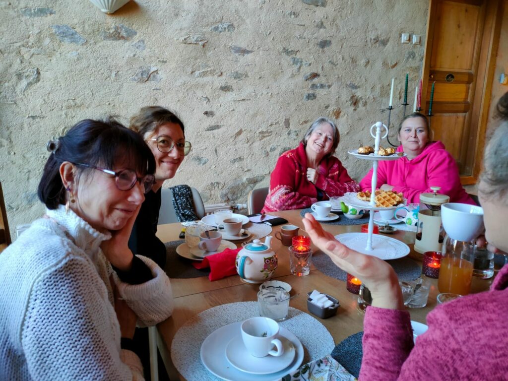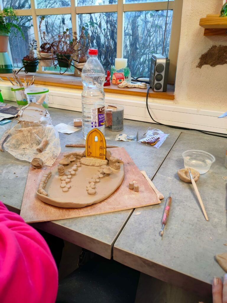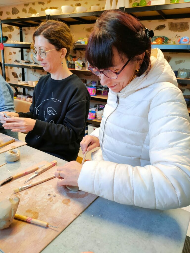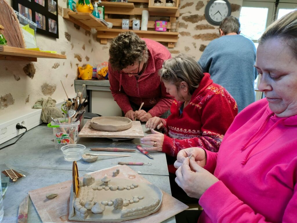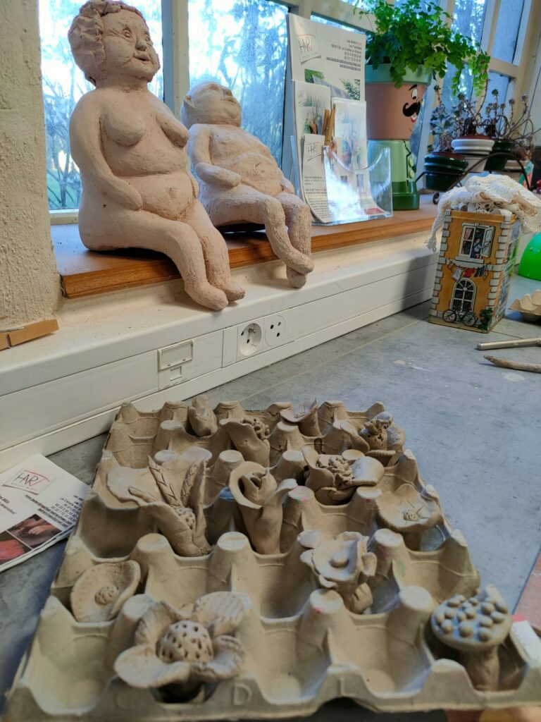 Samedi, un nouvel atelier poterie était proposé chez Heidi aux Tranchées. Dans son atelier, les participantes ont pu laisser libre cours à leur imagination : fleurs, mobiles, bains à oiseaux pour décorer le jardin ou encore objet déco, il y en avait pour tous les goûts. Comme d’habitude, le goûter préparé par Petri a connu un grand succès. Dans quelques semaines, les œuvres pourront être peintes et vernies après cuisson dans le four par Heidi. Merci à Heidi et Petri pour leur chaleureux accueil!