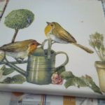 Danièle nous avait apporté une quantité de serviettes papier, avec toutes sortes de décoration : fleurs, oiseaux, animaux, paysages ………. nous n’avions que l’embarras du choix !