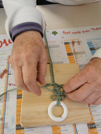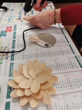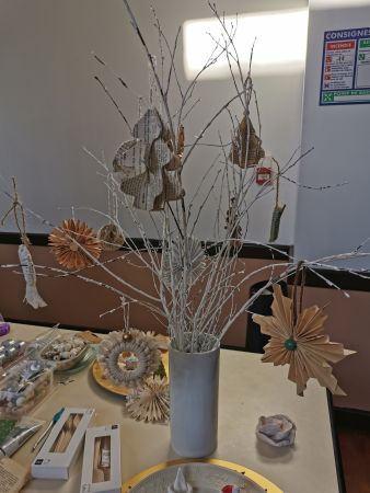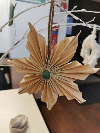 Après les boules origami d’Astrid, les couronnes d’Astrid, nous étions toujours dans le thème des décorations de Noël avec l’atelier de Babeth et Myriam. Elles nous ont proposé plusieurs petites réalisations à suspendre ou à poser sur nos tables. Avec du matériel simple, nous avons fait des petites merveilles.