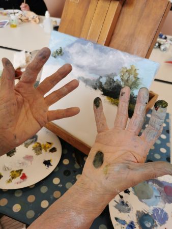 Aujourd’hui 3ème séance du stage d’initiation à la peinture à l’huile.